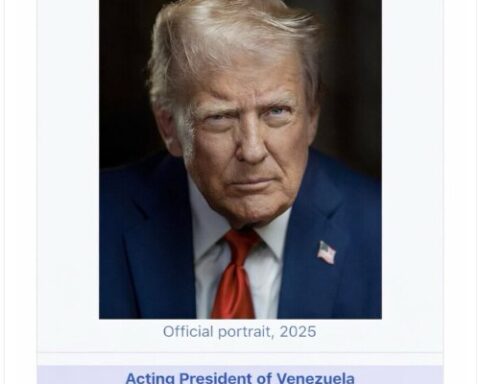Esta mañana el presidente de los Estados Unidos, Donald Trump, publicó en su cuenta de la red social Truth Social una imagen manipulada al estilo de una página de Wikipedia en la que se presenta como el “presidente interino de Venezuela”, con efecto