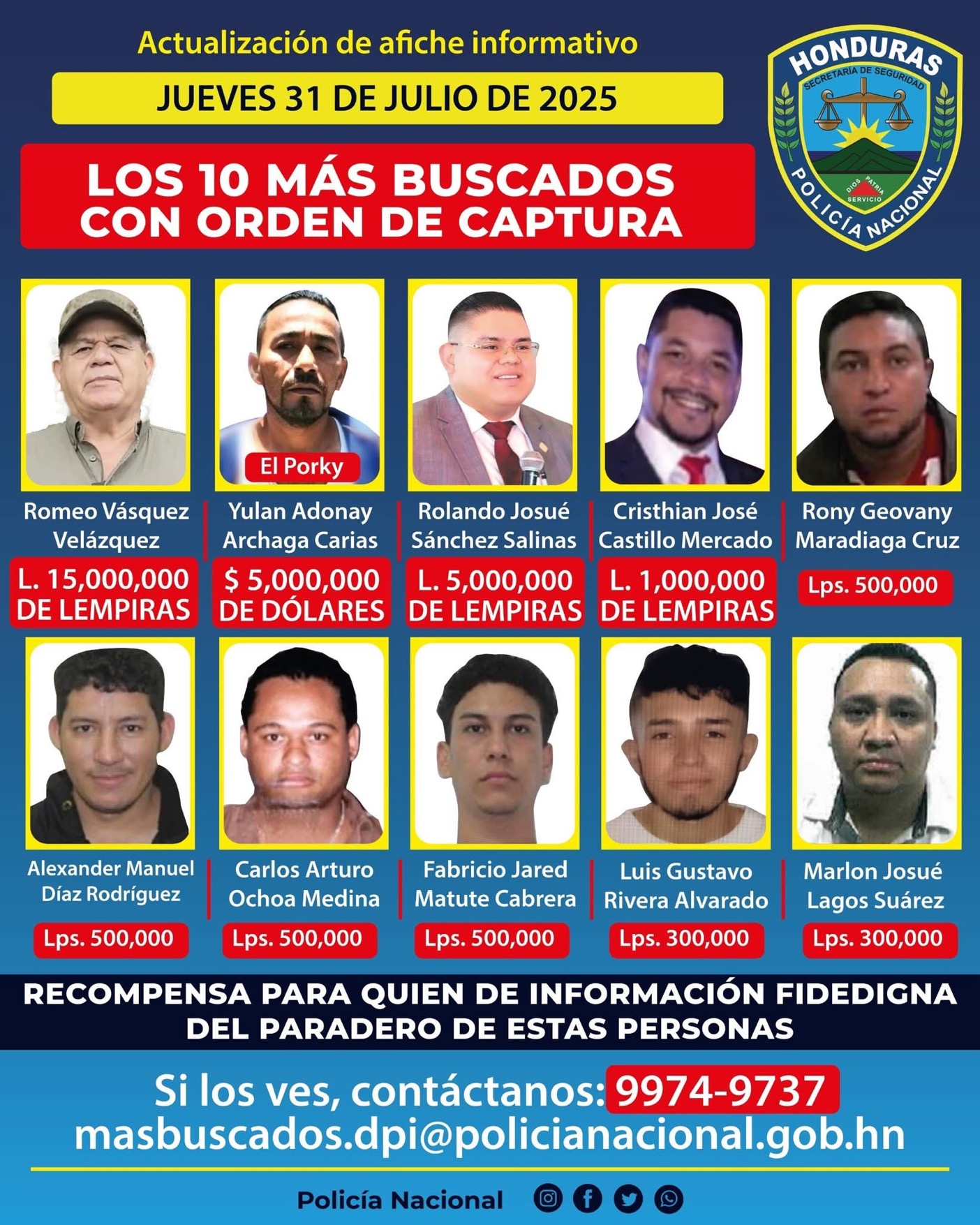 Seguridad aumenta recompensa por Romeo Vásquez