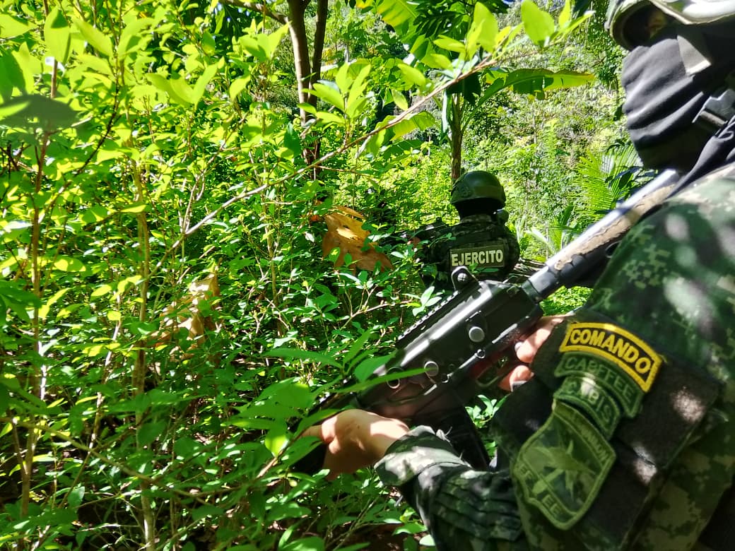 Producto de las constantes operaciones en el combate al narcotráfico, las Fuerzas Armadas de Honduras, a través del 15 Batallón de Fuerzas Especiales y la Dirección de Información Estratégica, en coordinación con la Dirección de Lucha Contra el Narcotráfico (DLCN), localizaron y aseguraron una nueva plantación de arbustos de hoja de coca en el sector montañoso de la comunidad de Río Chiquito, municipio de Bonito Oriental, departamento de Colón.