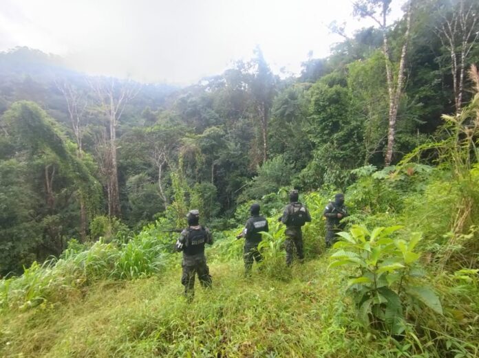 Equipos tácticos de la Dirección de Información Estratégica de las Fuerzas Armadas y la Policía Militar del Orden Público (PMOP) localizaron y aseguraron una nueva plantación de hoja de coca en la aldea Icoteas, municipio de Limón, departamento de Colón.