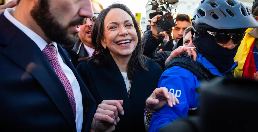 Antes de retirarse, Machado indicó que mantuvo comunicación con Edmundo González, el opositor que reclama la victoria electoral en los últimos comicios, en un contexto marcado por fuertes tensiones tras la captura y traslado de Nicolás Maduro y su esposa, Cilia Flores, a territorio estadounidense.