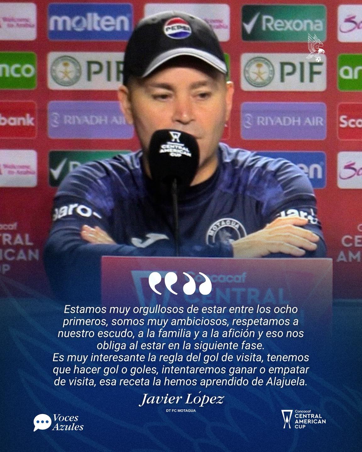 “He mirado a Motagua más detenidamente. Buen trabajo del profesor López. Recibe pocas anotaciones. Será un equipo complicado porque tiene buena presencia física y será un rival complicado”.