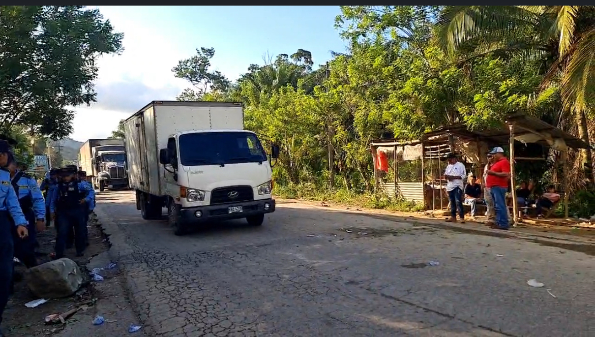 Aunque son pocos los protestantes, lograron parar el tráfico vehicular en la salida hacia La Ceiba .
