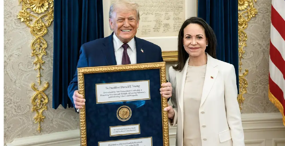 Machado obsequió la medalla enmarcada junto con un mensaje de gratitud por el operativo que depuso a Nicolás Maduro el 3 de enero. El Comité Nobel aclaró que, si bien la medalla física puede cambiar de dueño, el título de Premio Nobel de la Paz no es transferible.